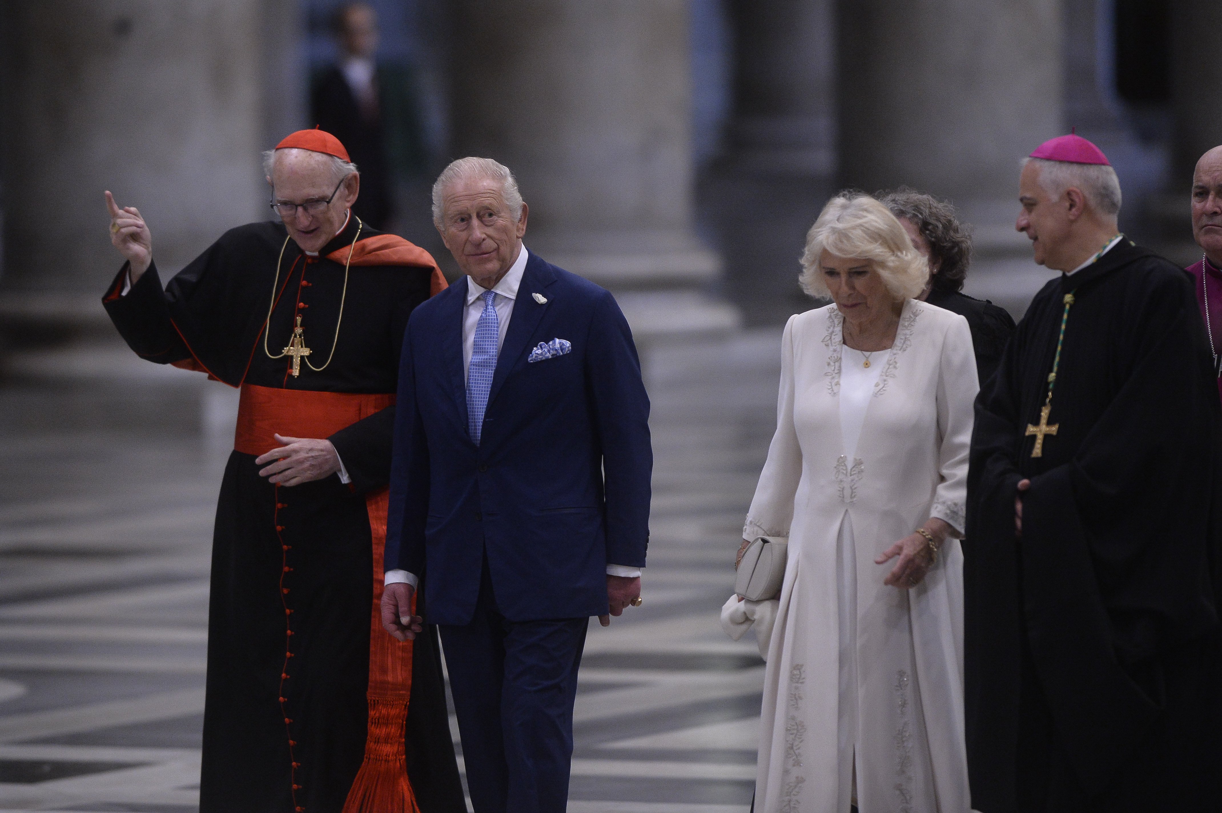 Após deixarem o Vaticano, o rei Charles e a rainha Camilla visitaram a Basílica de São Paulo Fora dos Muros, em Roma, atravessaram a Porta Santa, rezaram no túmulo de São Paulo e participaram de outro serviço de oração.